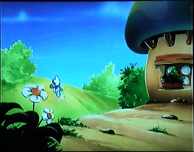 Left: Smurfette promises a special surprise upon returning with all thirty moon crescents | Right: Departing from Smurf Village on a brand new adventure