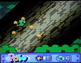 Now let's talk about the music, and it is good! =) The sound quality is really pleasant for the ears to the listen to, for a lot of the songs sound catchy, with a few that sound either ambient or soft and slow for a few. The intro sequence sounds sweet, bouncy, and charming, and a lot of the songs sound incredibly lighthearted and enjoyable. The sand theme is slow and ambient, the ice theme is lightheartedly chilling, the underwater themes are marvelous, the volcano theme is imposing, the flight theme sounds slightly Western, and a few of the fortress themes sound soft and mysterious. The boss themes vary and are all good in their own right, and the final boss theme sounds really epic. =) The sound effects are really decent, for Takuto and Karin's sounds are different, the star sounds are cool, and as a bonus, there is even a sound effect lifted straight from Namco's Japan-exclusive arcade coin-op Libble Rabble (as a really cute nod to that game, it's played whenever you open a chest inside the sunken ship level)! =D